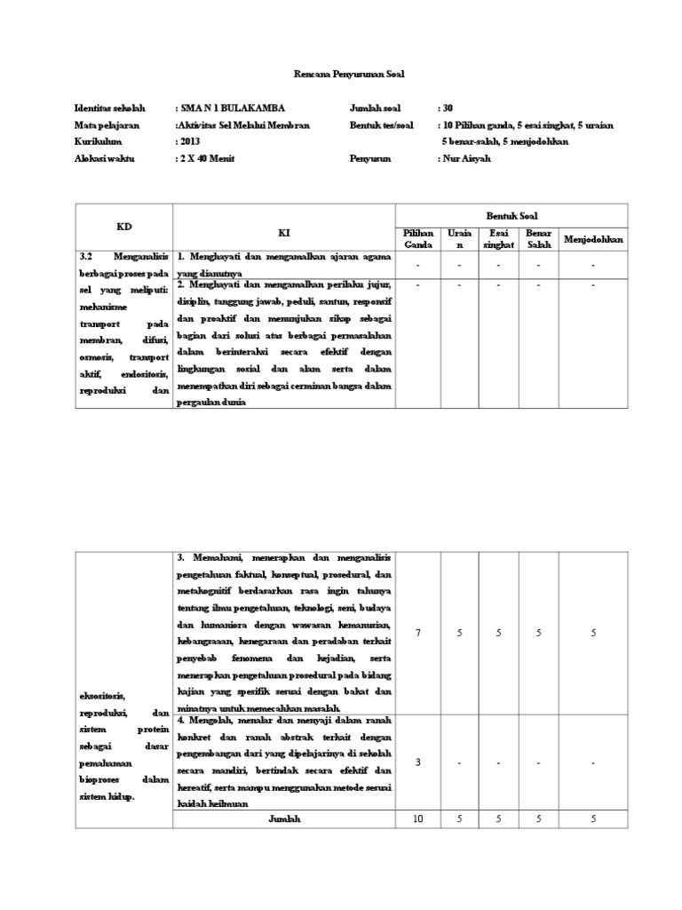 Pdf Kisi Kisi Soal K13 Rev 2016 Biologi Kelas Xi Sma Bab 1